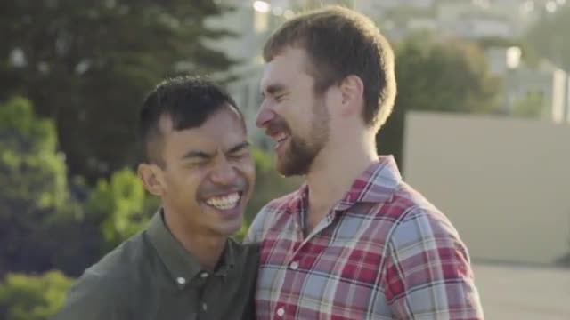 > Cute Gay Couple Kiss And Flirt On A Rooftop At Sunset In San Francisco (4K)