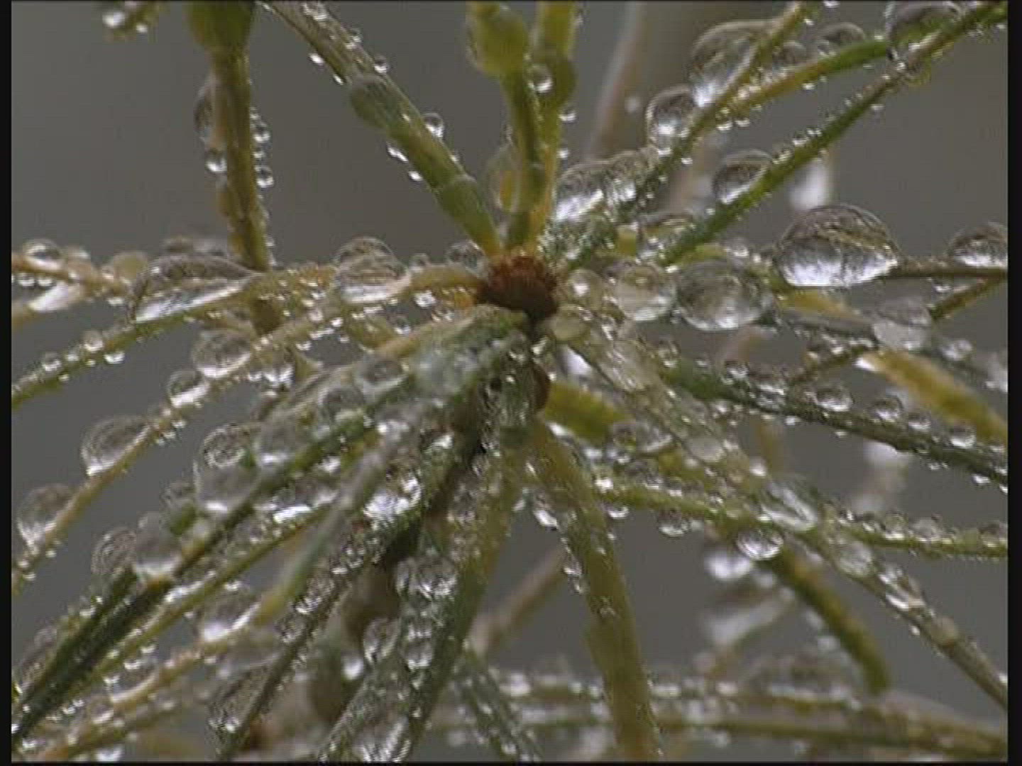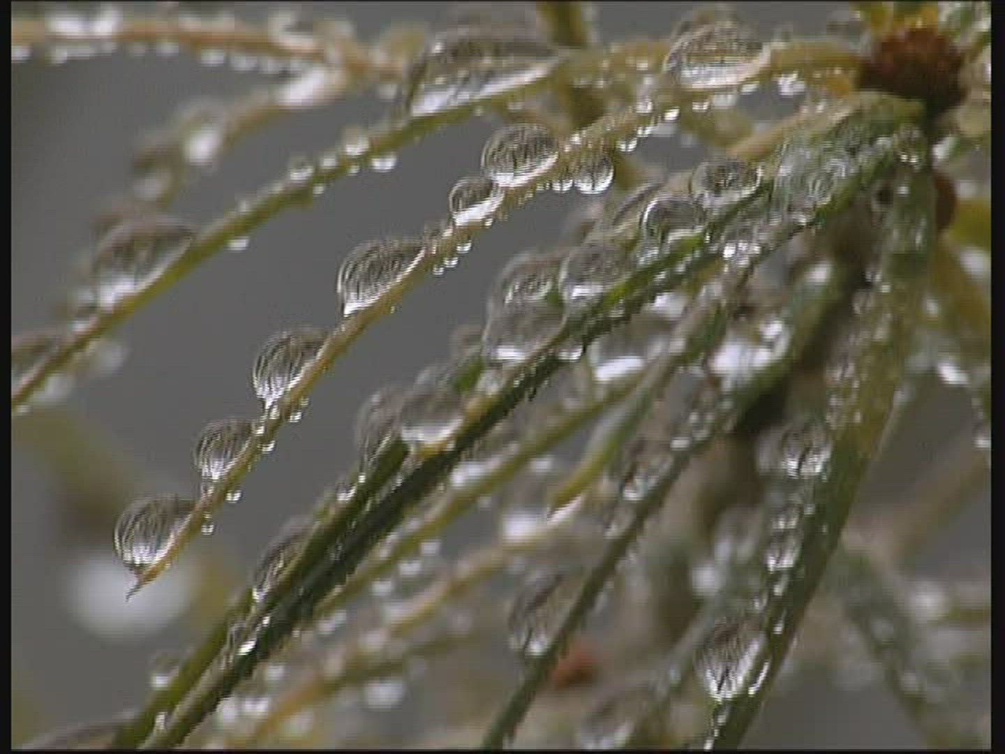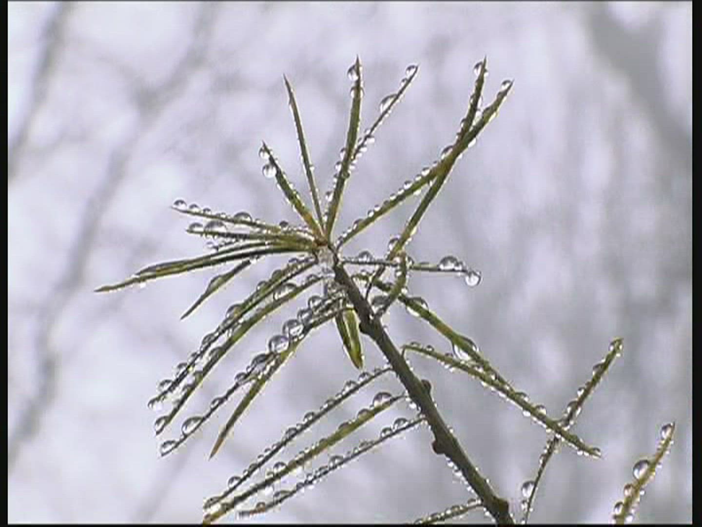 Green Tree Branches Under the Falling Rain