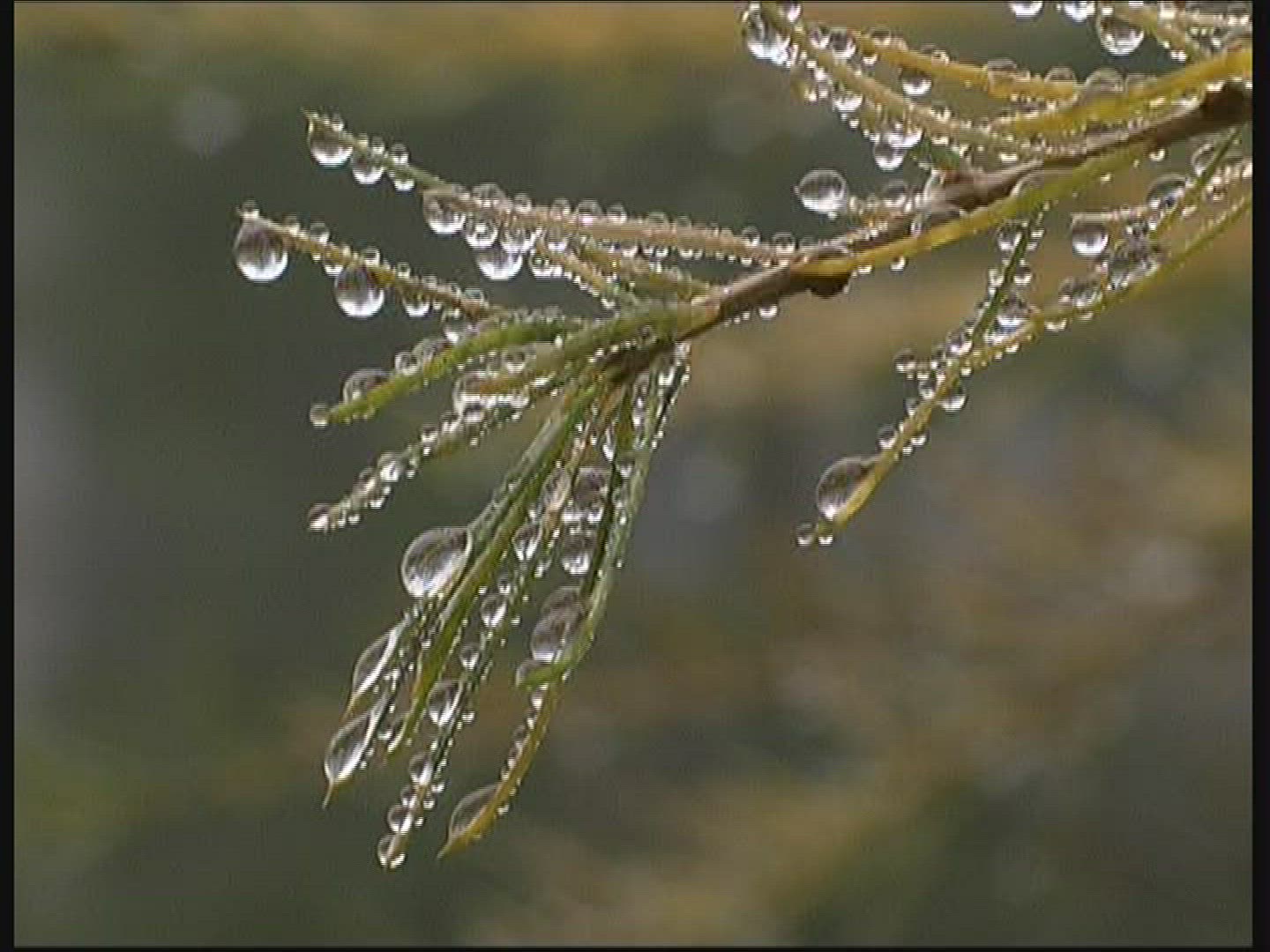 > Green Tree Branches Under the Falling Rain
