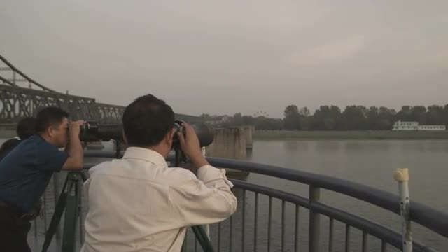 A close up shot of the entrance to the Broken Bridge from DanDong to North Korea. The bridge was bombed in the Korean war.