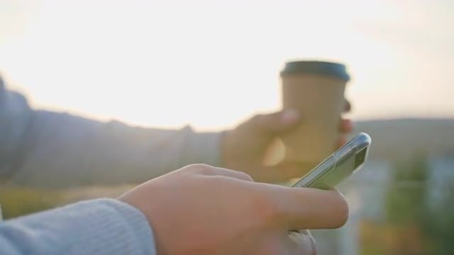 920776 - Man's Hand Holding a Phone Outside