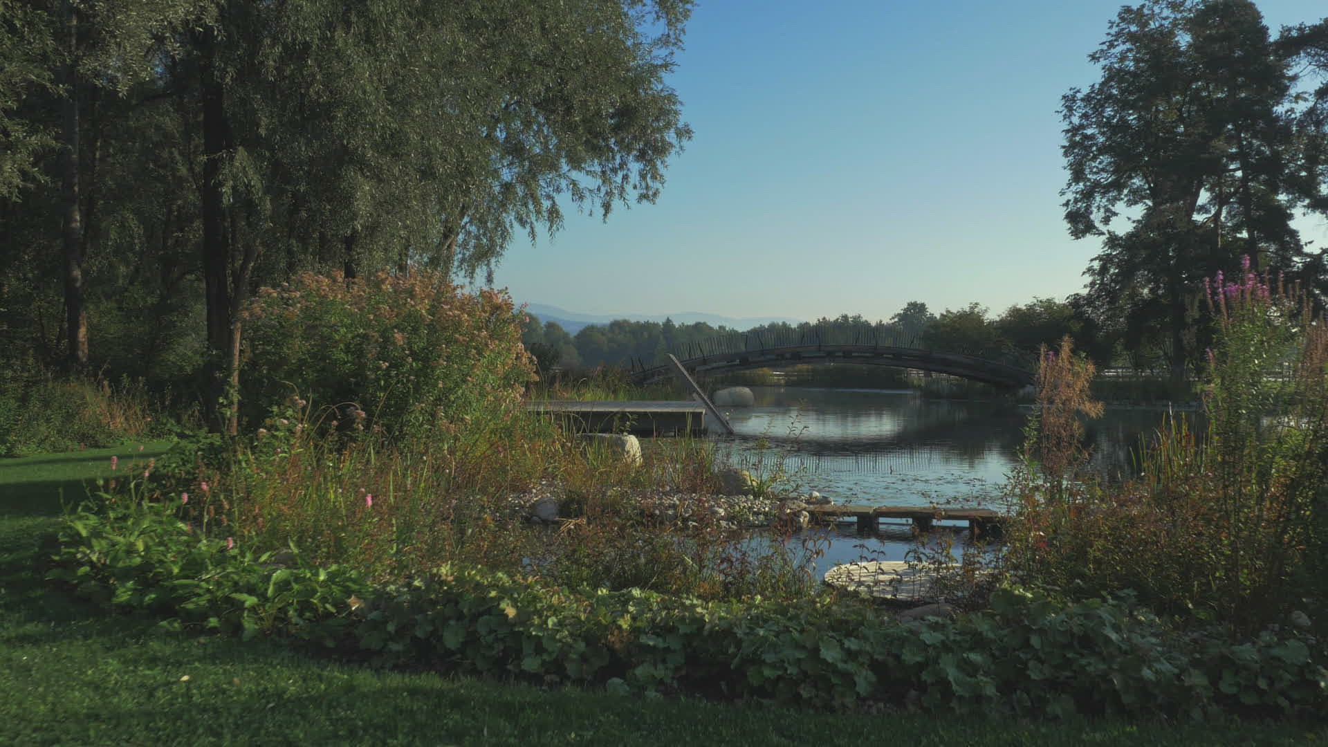 1130095 - Panoramic view of the pier, river and transparent water