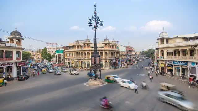 > Traffic passing through one of the city gates in Jaipur, Rajastan, India - 4K Timelapse