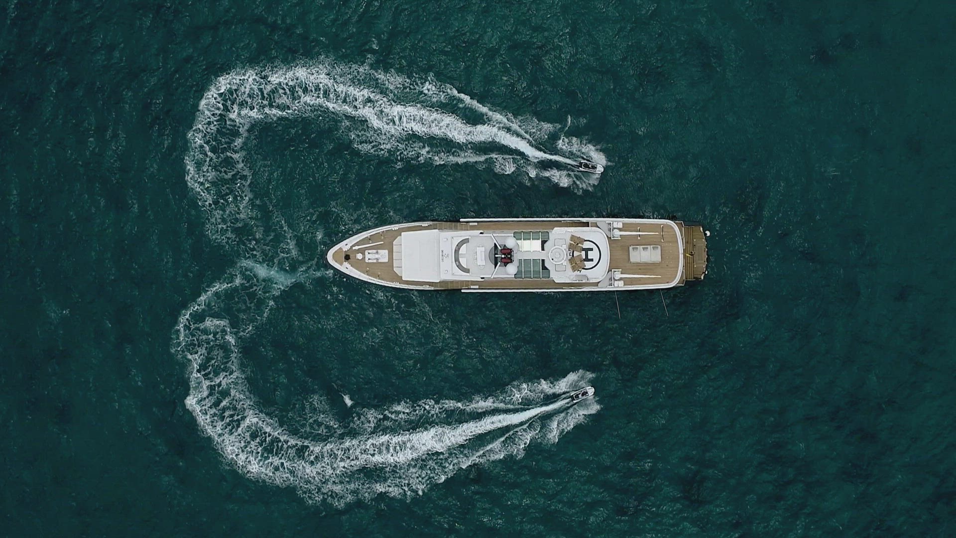 2166439 - Drone shot of Jet Skis making a Heart Shape around a Luxury Yacht