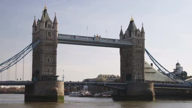 > Pan of the Tower Bridge in London.