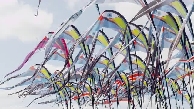 Coloured flags rippling in the wind at the Bristol Kite Festival