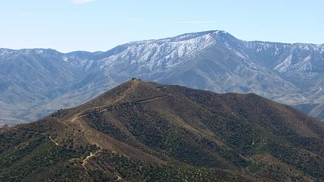 > Aerial view of snow covered mountain in Sierra Nevada Mountains