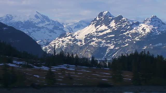 4k Aerial camera tilting up revealing huge mountain peak with a road switchback through the valley