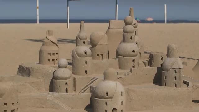 MS TU Sand castle on beach / Rio De Janeiro, Brazil