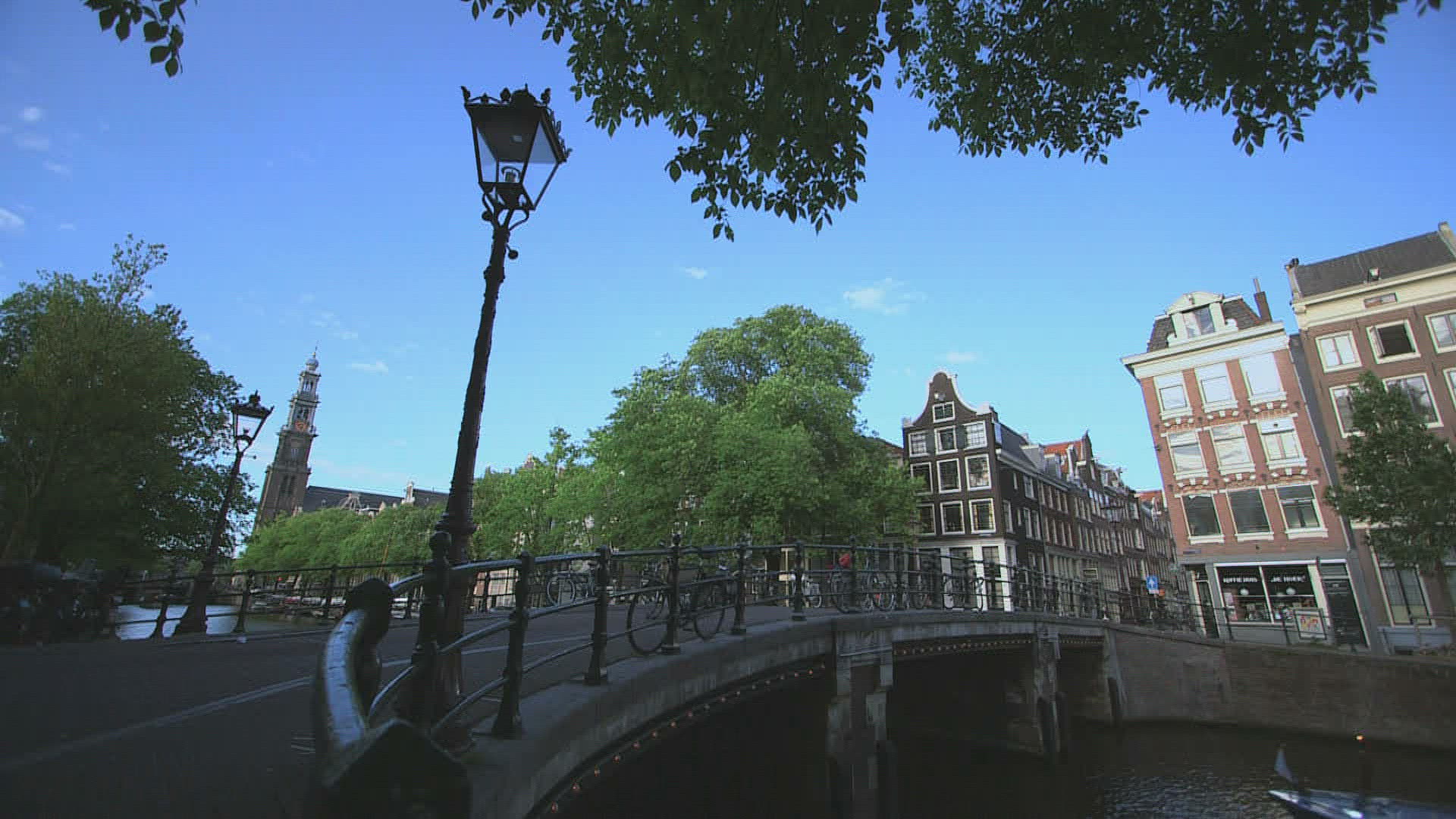 > Amsterdam - Western Church (Westerkerk) in the Jordaan neighborhood, on the bank of the Prinsengrach