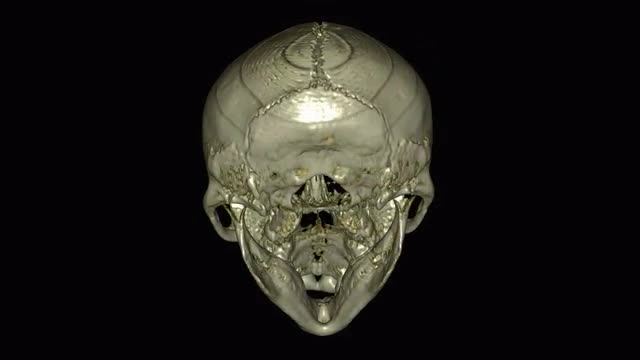 MS CGI 3D CT reconstruction of head of elderly man revealing skull and skeletal structures