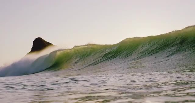 317749 - Static shot of the setting sun seen from a beautiful island with lens flare.