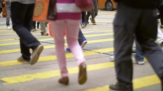 MS SLO MO SELECTIVE FOCUS People crossing street / Hong Kong, China