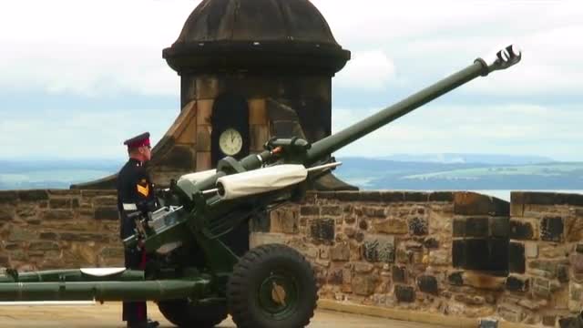> One O'Clock Gun preparing to be fired at Edinburgh Castle.