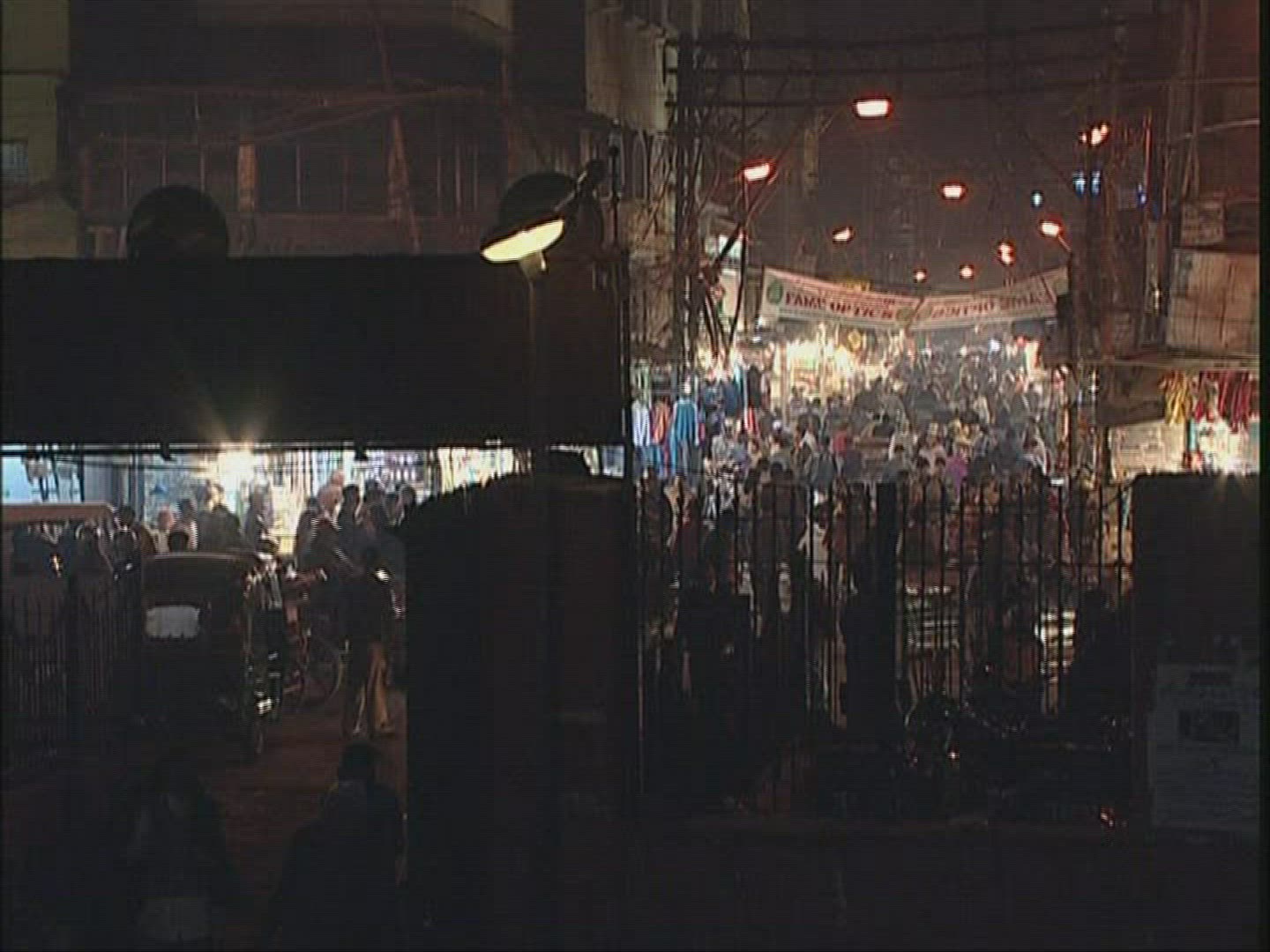 Wide shot of an old city street with old buildings and traffic at sunset