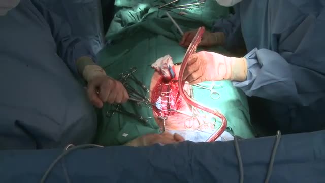 Zoom out of blood being suctioned during heart surgery