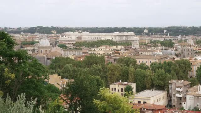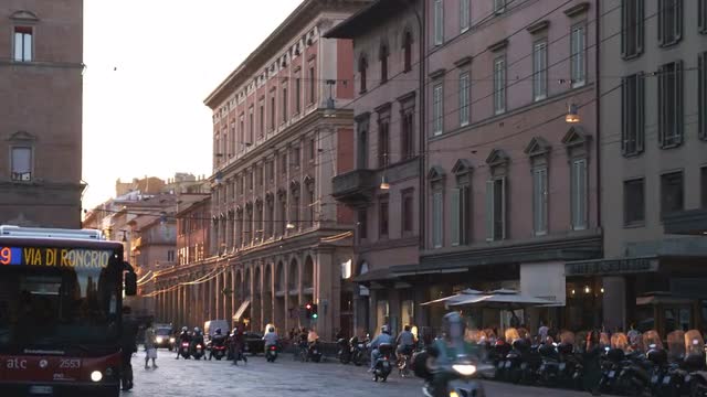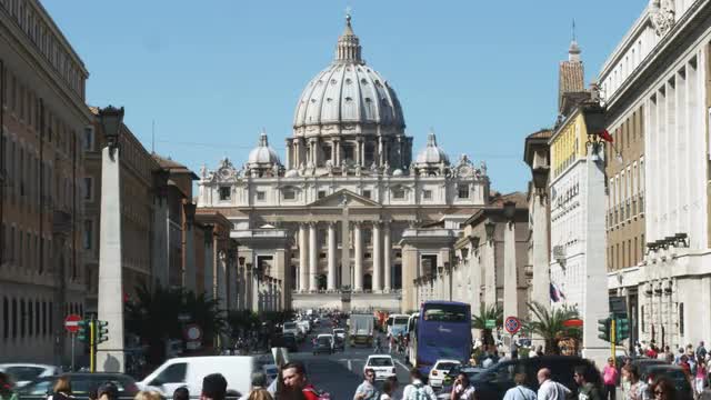 > Crowd at the base of an ancient building in Italy.