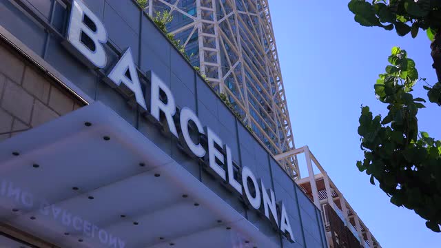 163182 - A building has a large sign saying Barcelona.