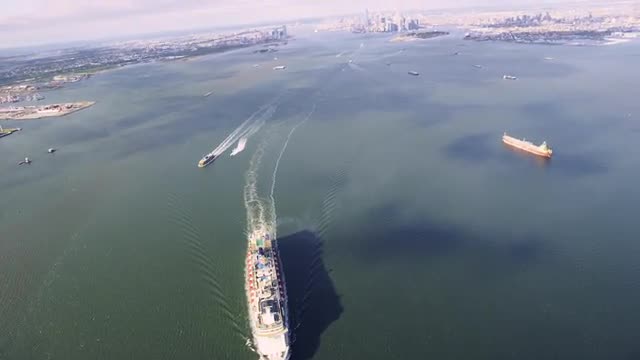 125358 - WIDE AERIAL POV over Atlantic Ocean with white clouds in blue sky