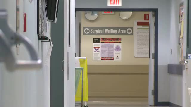 Medical staff walk through hallway