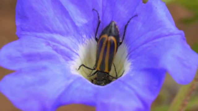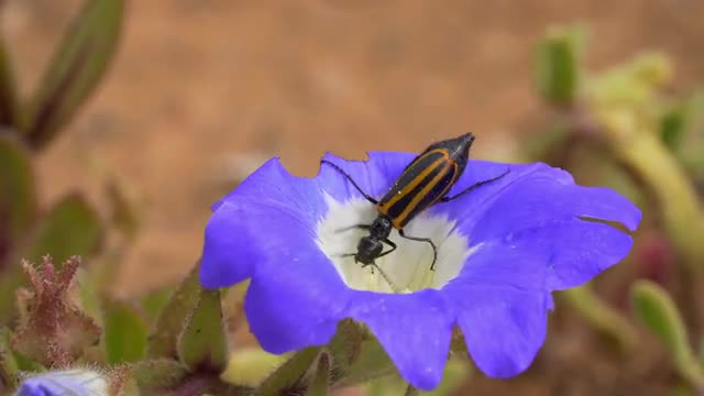 1095966 - A big beetle moving over a wildflower in the atacama desert during the last blooming