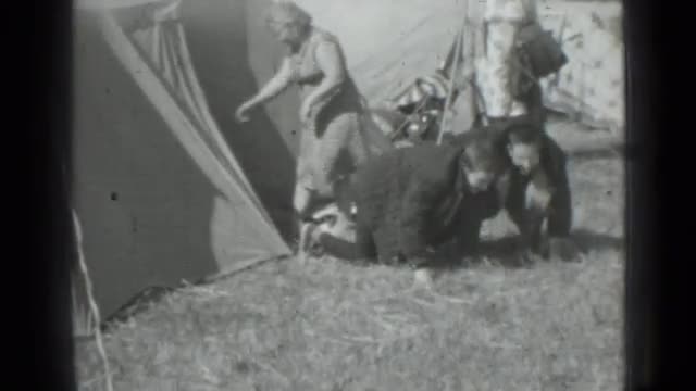 714033 - 1962: two persons are playing hide and seek and thrown by lady. RUSSIA