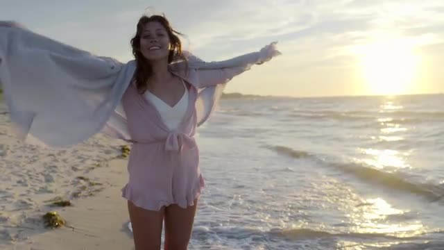 Woman Wearing Russian Traditional Shawl on a Boat Board, 4k Ultra hd Footage