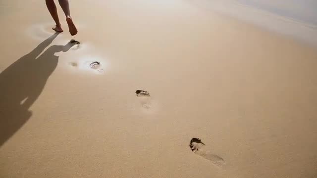 MS SHAKY TS HA TU Young woman walking along sandy beach / Fuerteventura, Spain
