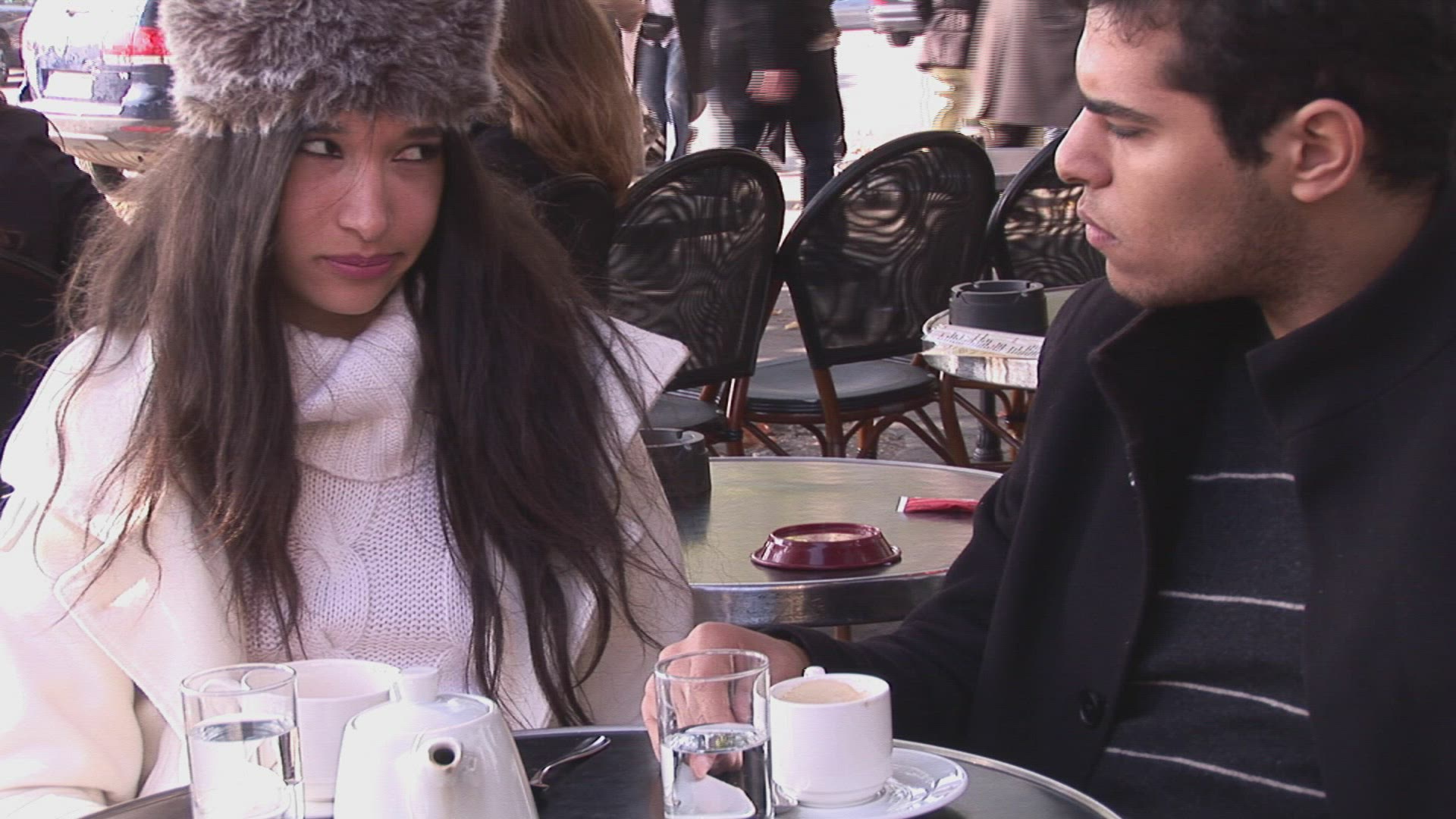 CU SELECTIVE FOCUS Man and woman talking / London, England, United Kingdom