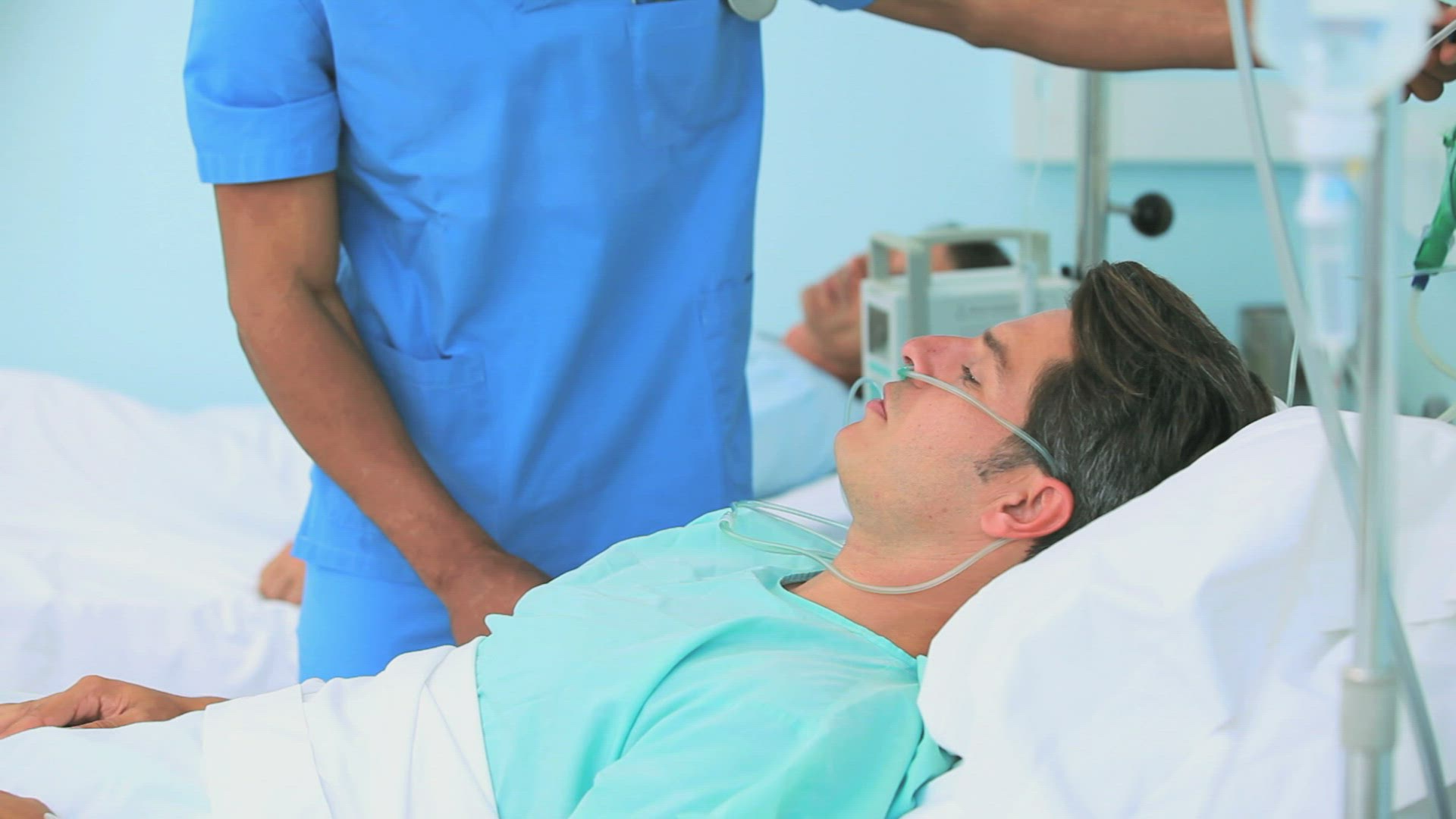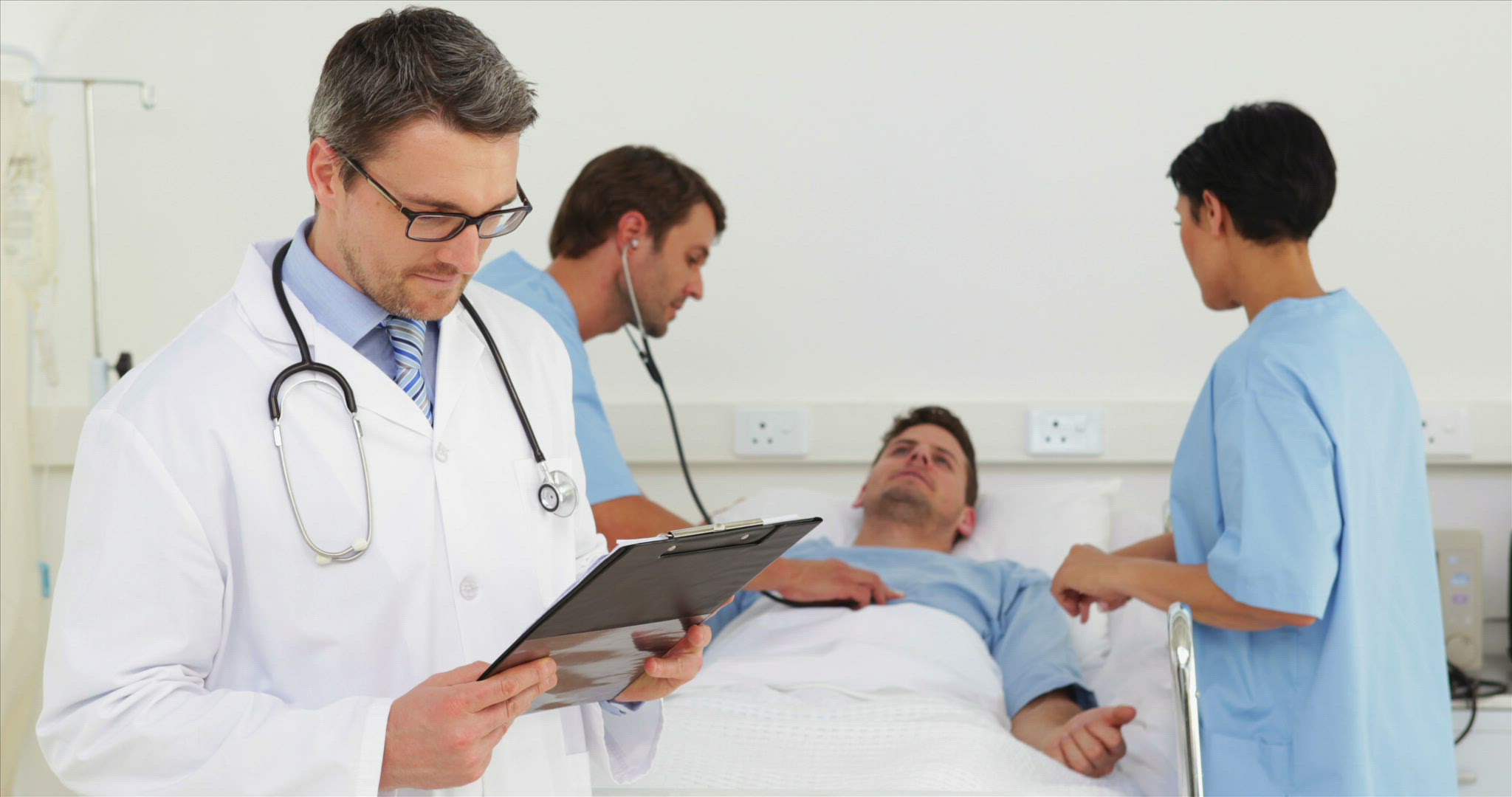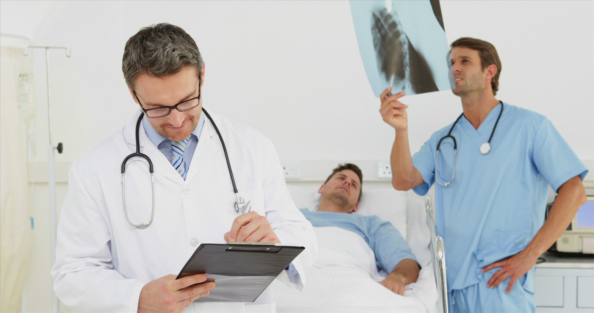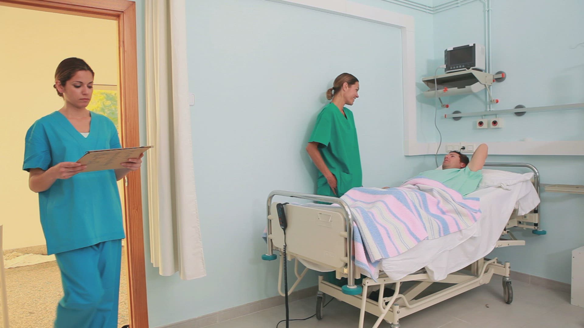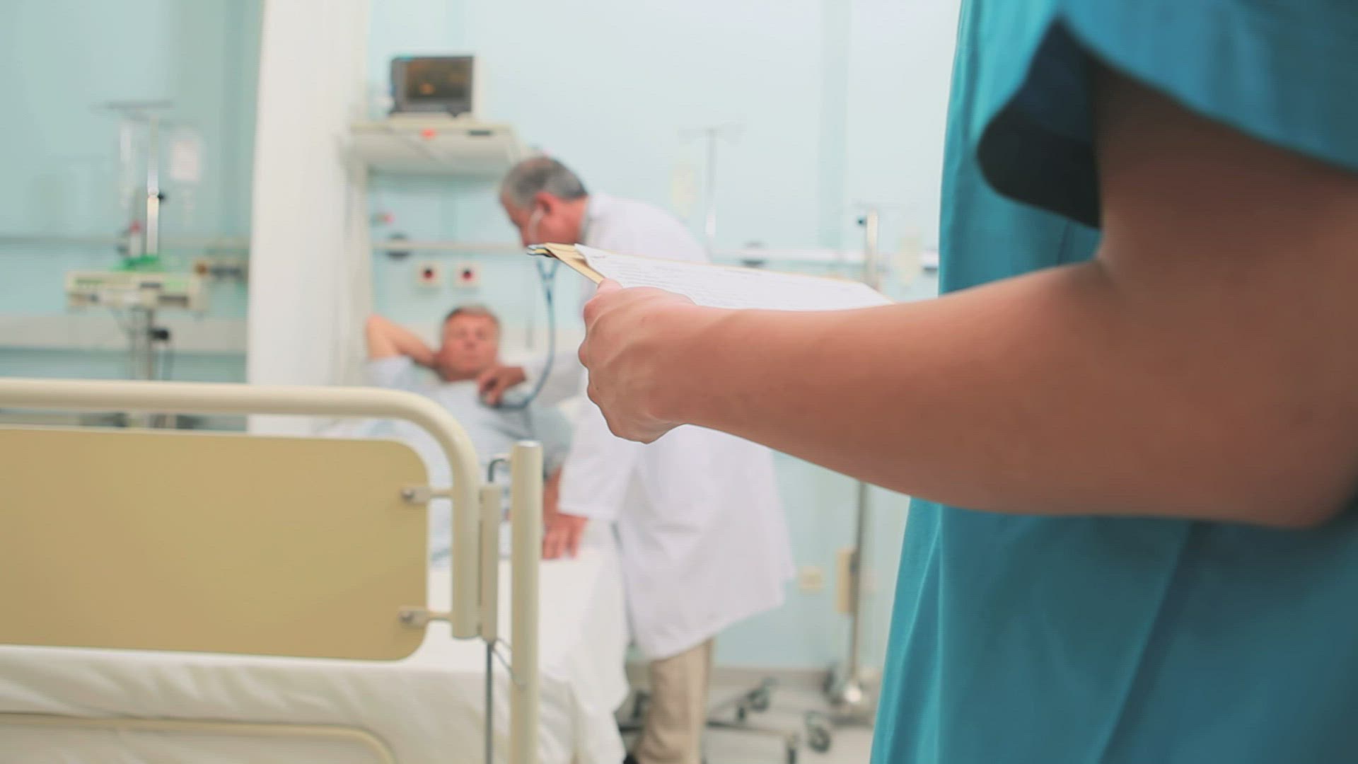 MS PAN R/F Doctor talking to patient in hospital / Odense, Denmark