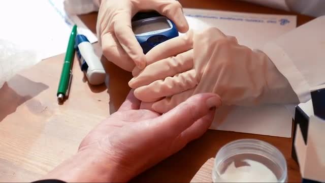 738717 - Doctor taking a sonogram of patients neck in the hospital