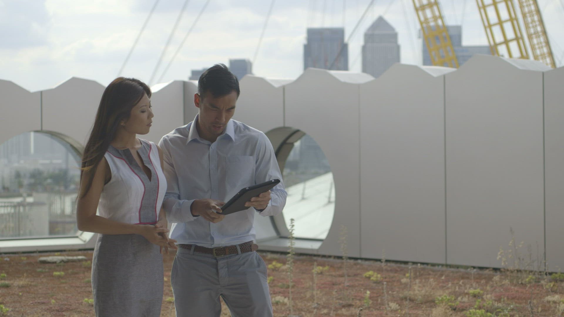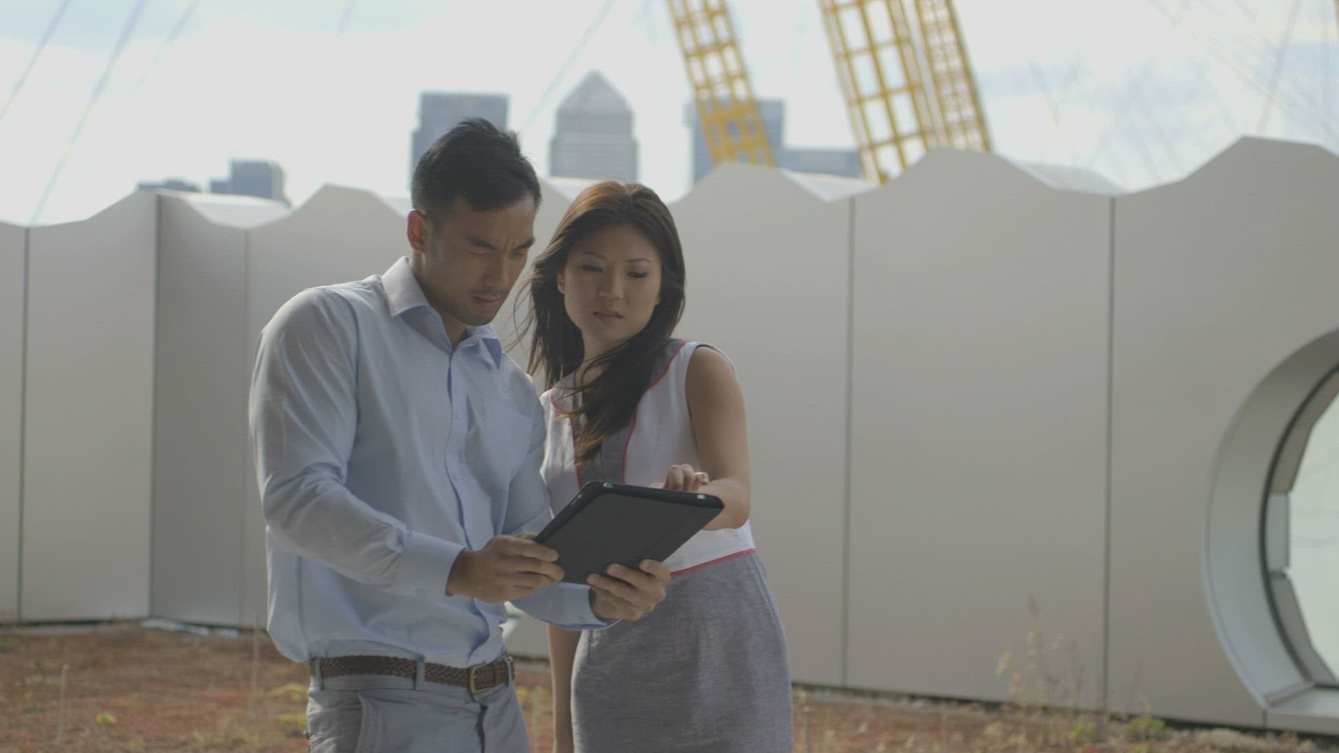 CU PAN Doctors looking at tablet with x-ray image, patients in background / Odense, Denmark