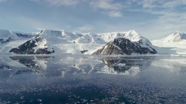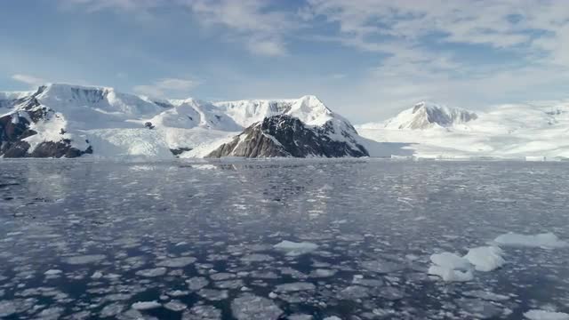 WS POV Ice floating on water reflecting clouds/ Antarctica