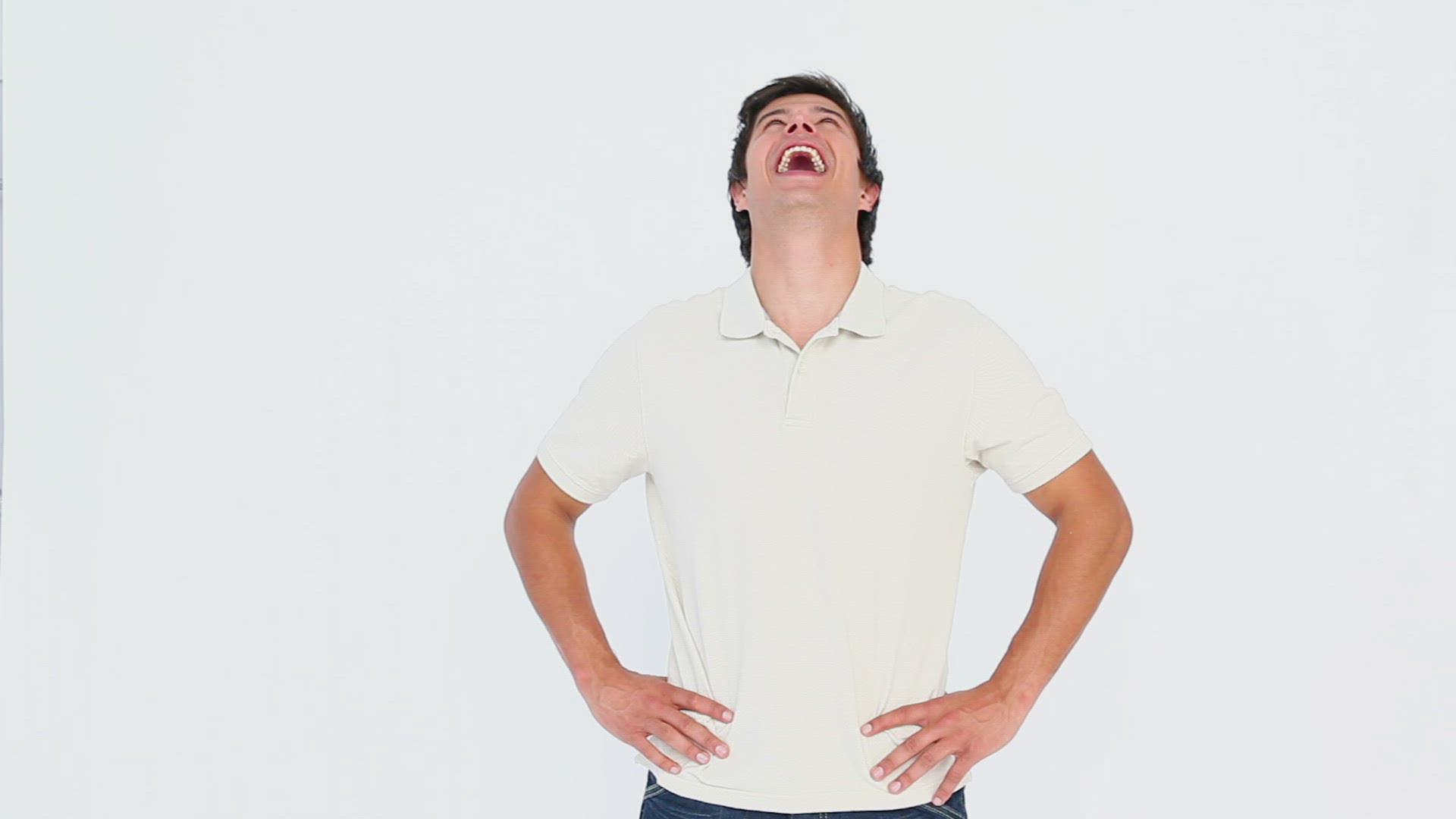 806816 - Genuine moment portrait of man in 20s or 30s laughing and looking at camera