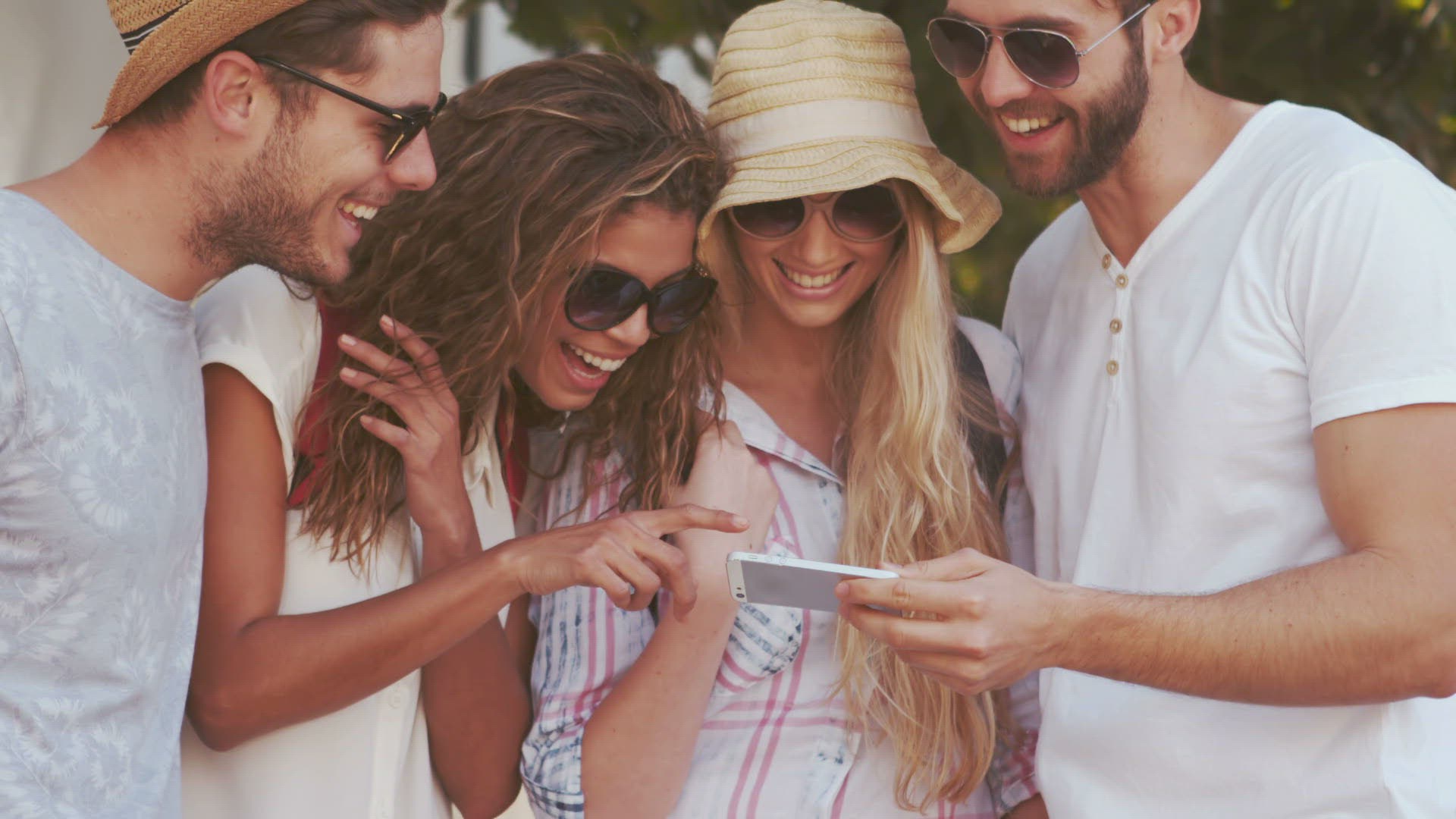 MS SHAKY Friends listening to music on tablet, singing and dancing / Como, Italy