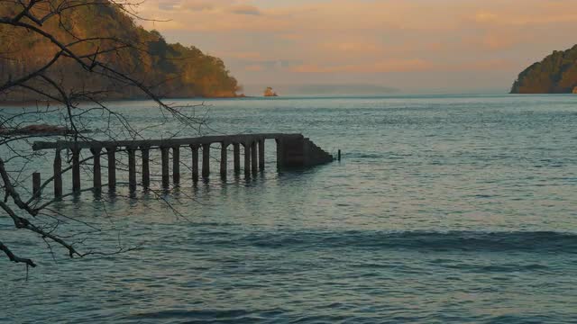678490 - Flying over the wooden pier in water