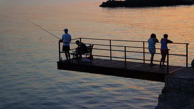 512428 - Sunset Over the Sea With Fishermans on the Pier