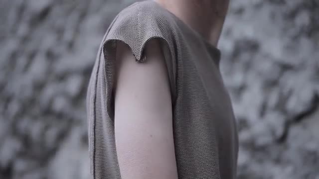 588507 - Beautiful Girl in Futuristic Clothing Standing on the Background of Gray Wall