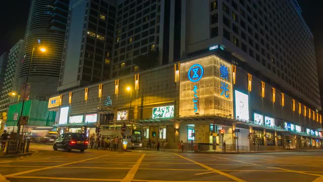 > Timelapse of Night Street Traffic in Big City, Hong Kong