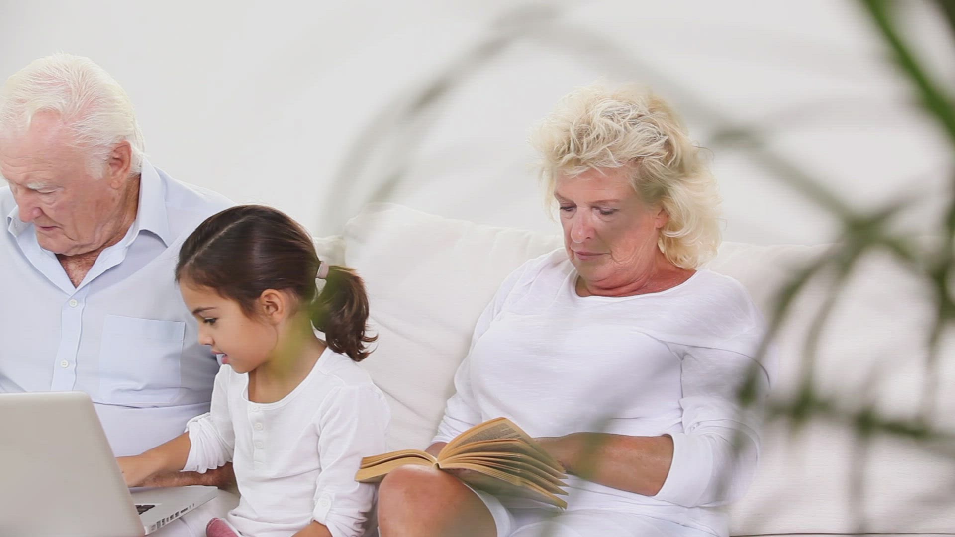 Slow motion of a grandmother reading a story to little grandson outdoor. Leisure with grandma on hot summer day