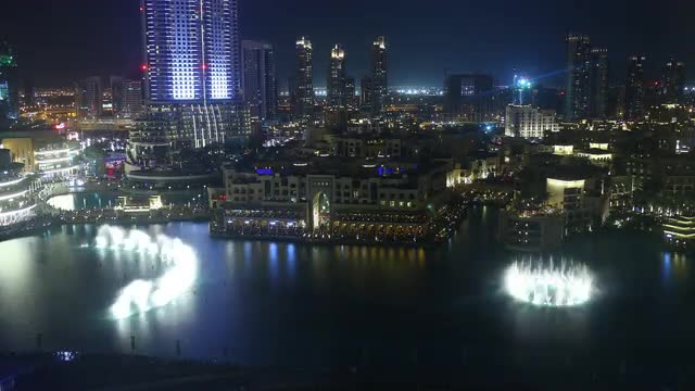 Slow motion of a group of friends with tree men and a woman walking along the night street and listening to music in headphones