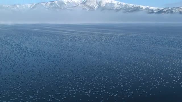 > Fog at dawn over Lake Kussharo, Hokkaido, Japan