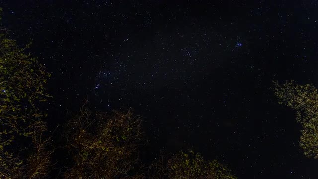 312844 - Time-lapse of stars moving in the sky sillouetted through trees over Fort Davis, Texas.