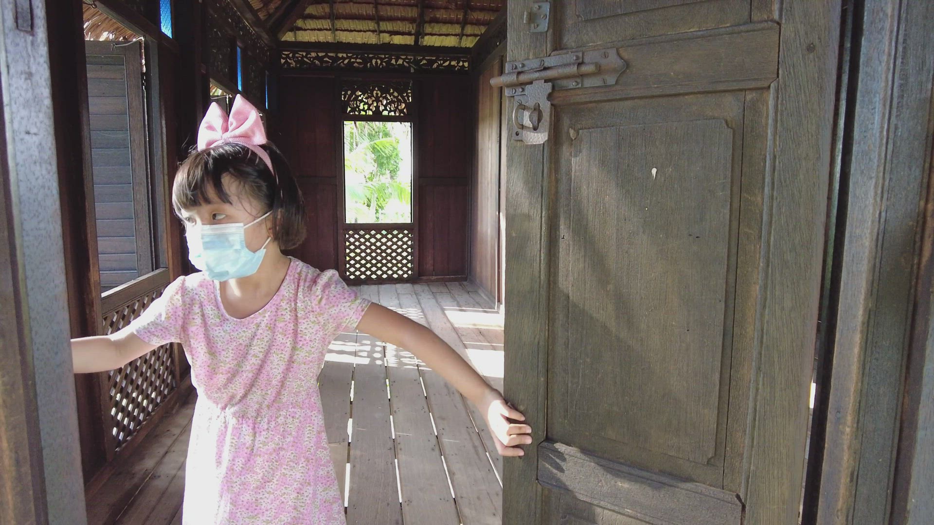 Woman Coming Out the Room and Walking Down Spiral Stairs