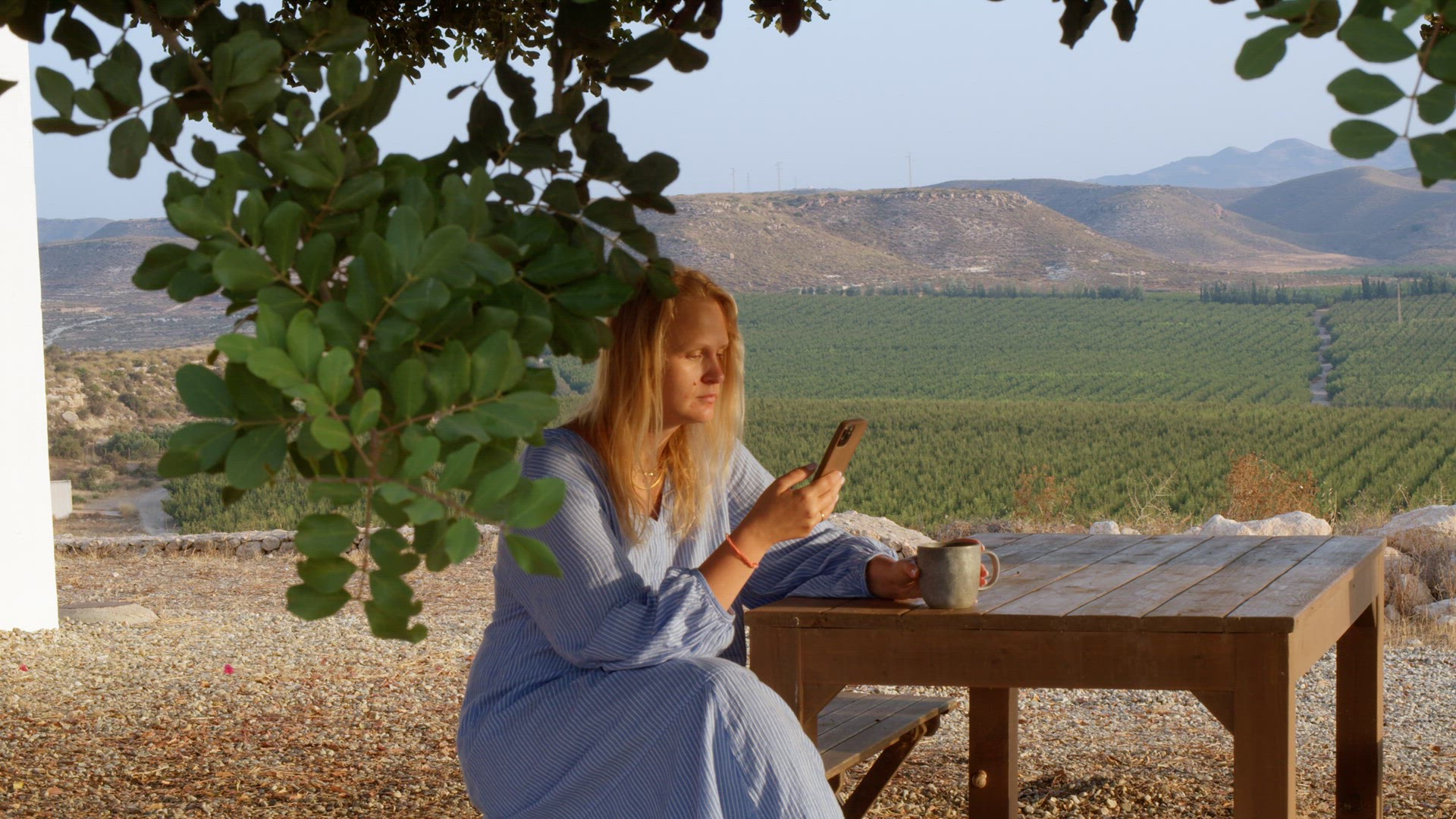Close-up shot of womans hand showing house model outdoor. Concept of having summer cottage in countryside. Real estate advertising