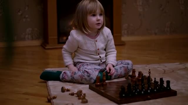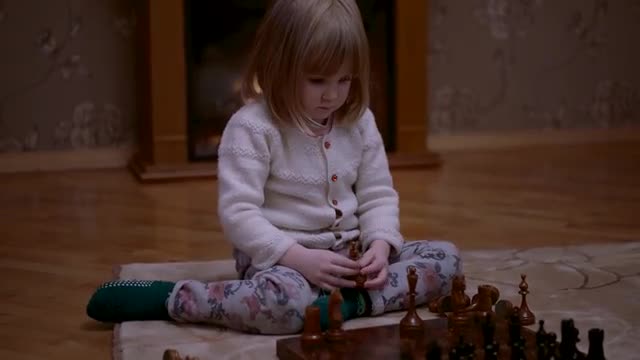 674837 - Little Girl Playing Chess at Homeon Wooden Chessboard
