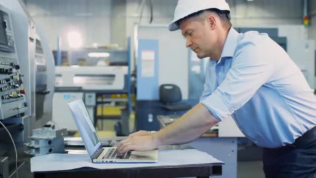 3D Printer. Medium-Wide shot. Scientist removing 3D object