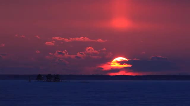 > Sunset over snow field, Hokkaido, Japan