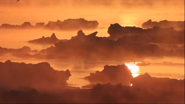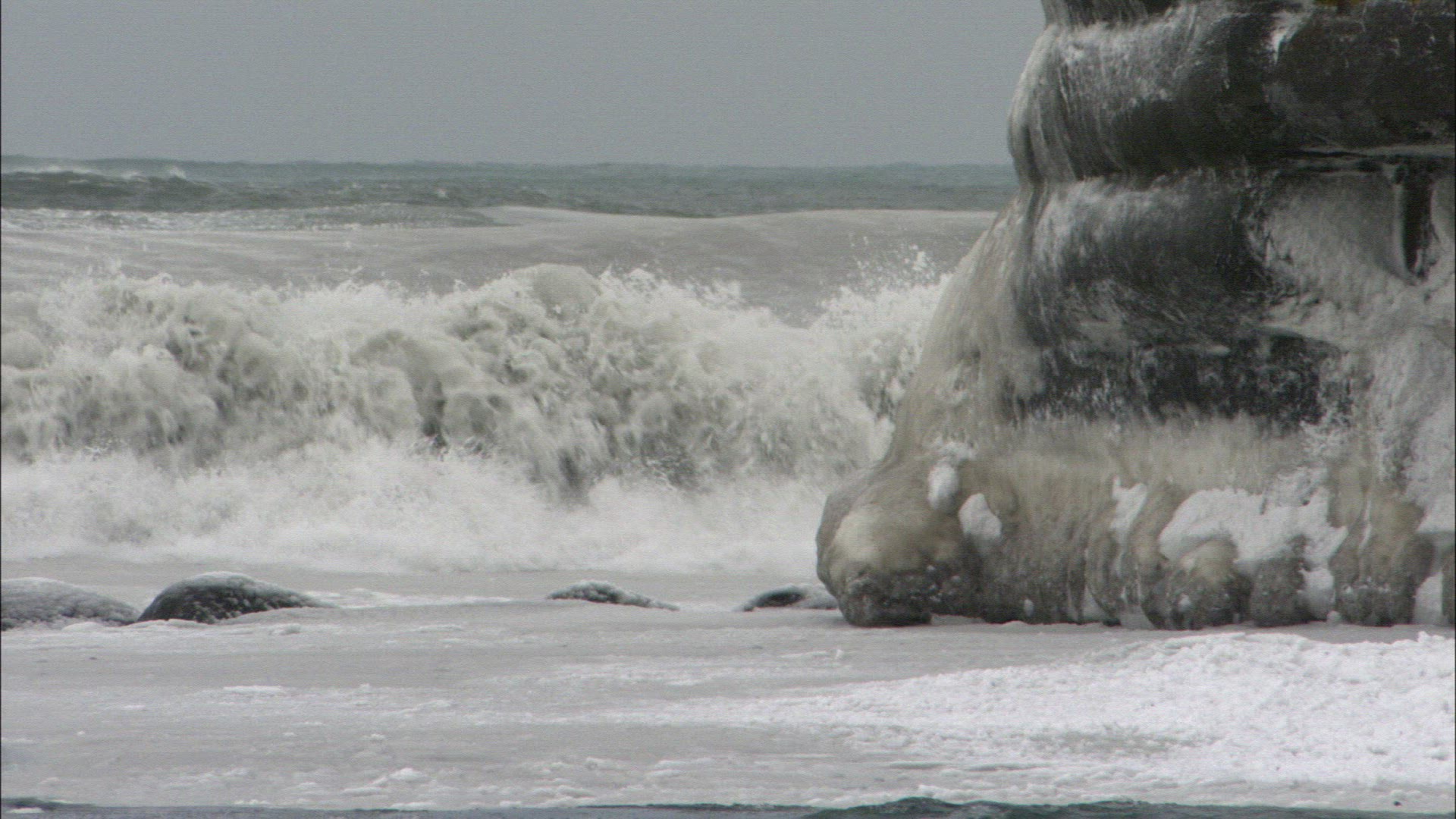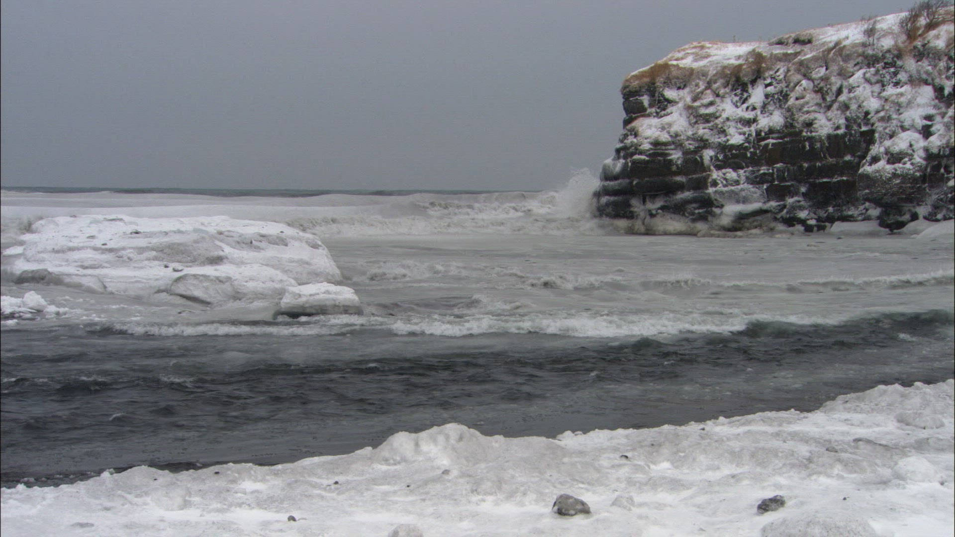 601635 - Drift ice floe and waves off the coast of Hokkaido