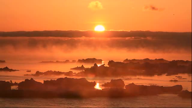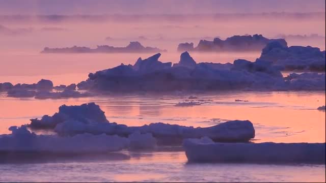 601636 - Drift ice floe and waves off the coast of Hokkaido